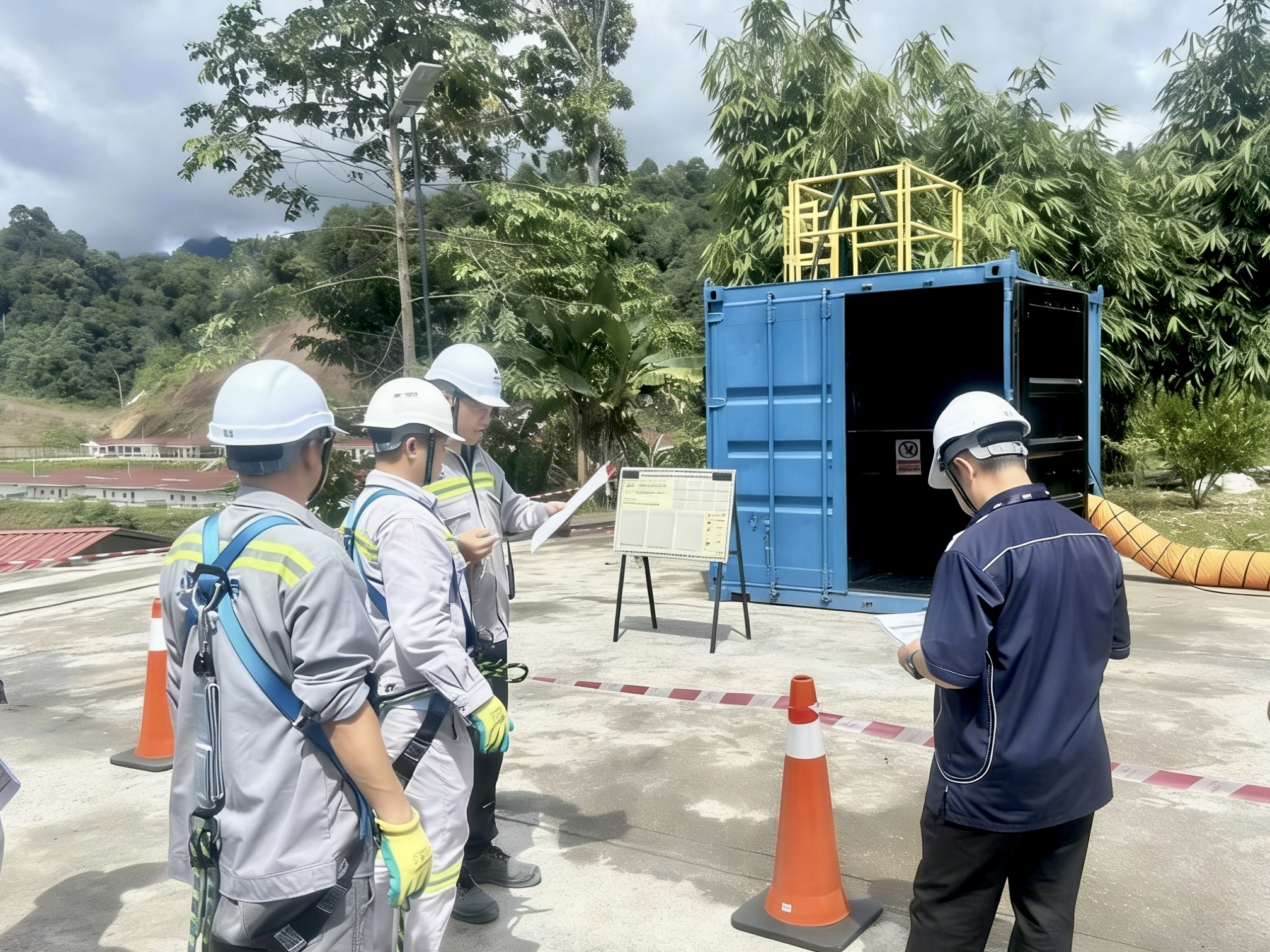 本次培训为期三天,采用“理论授课+仿真实操+案例警示”三位一体模式,特邀马来西亚本土资深安全专家主讲。参训人员在模拟作业环境中开展通风检测、防护穿戴、应急救援等全流程实操训练,切实将安全规范转化为操作本能。项目严格执行“培训—考核—持证—复训”闭环管理机制,确保密闭空间作业人员100%持有效证件上岗,杜绝无证操作。