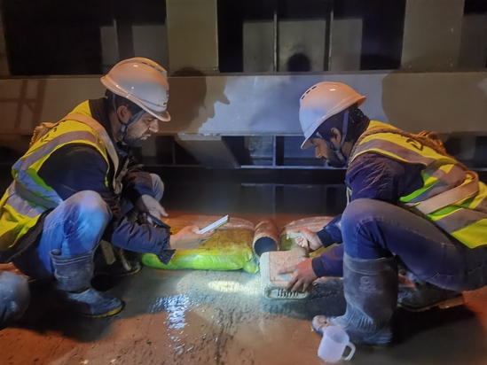 验收数据显示,进口封堵门1号孔渗水量为35.5升/分钟,2号孔渗水量为升/分钟,出口叠梁门渗水量为0,各项指标远低于国际标准允许值。