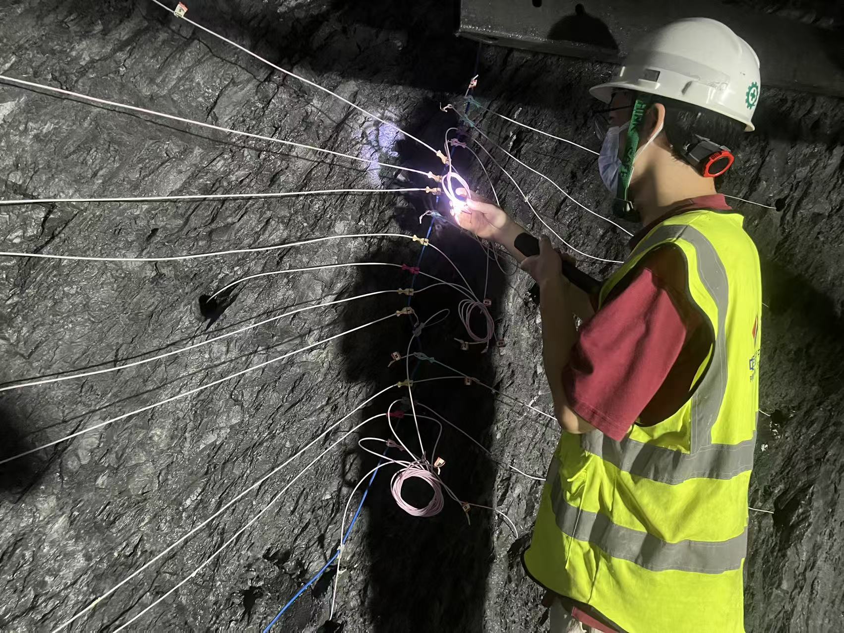 技术人员检查隧洞装药连线