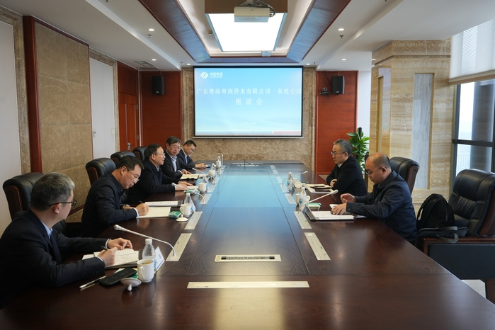 张桥介绍环北部湾广东水资源配置工程A1标、B1标进展成效、建设计划,并重点详细说明工程地心泵站安全度汛、大体积混凝土温控、隧洞施工推进、钢管供应保障等建设情况。他表示,感谢粤海粤西供水公司长期以来给予水电七局的信任支持和关怀指导,将进一步提高政治站位,高度重视安全文明施工,充分发挥技术优势,全力以赴将环北部湾广东水资源配置工程打造成新时代民生精品水利工程。